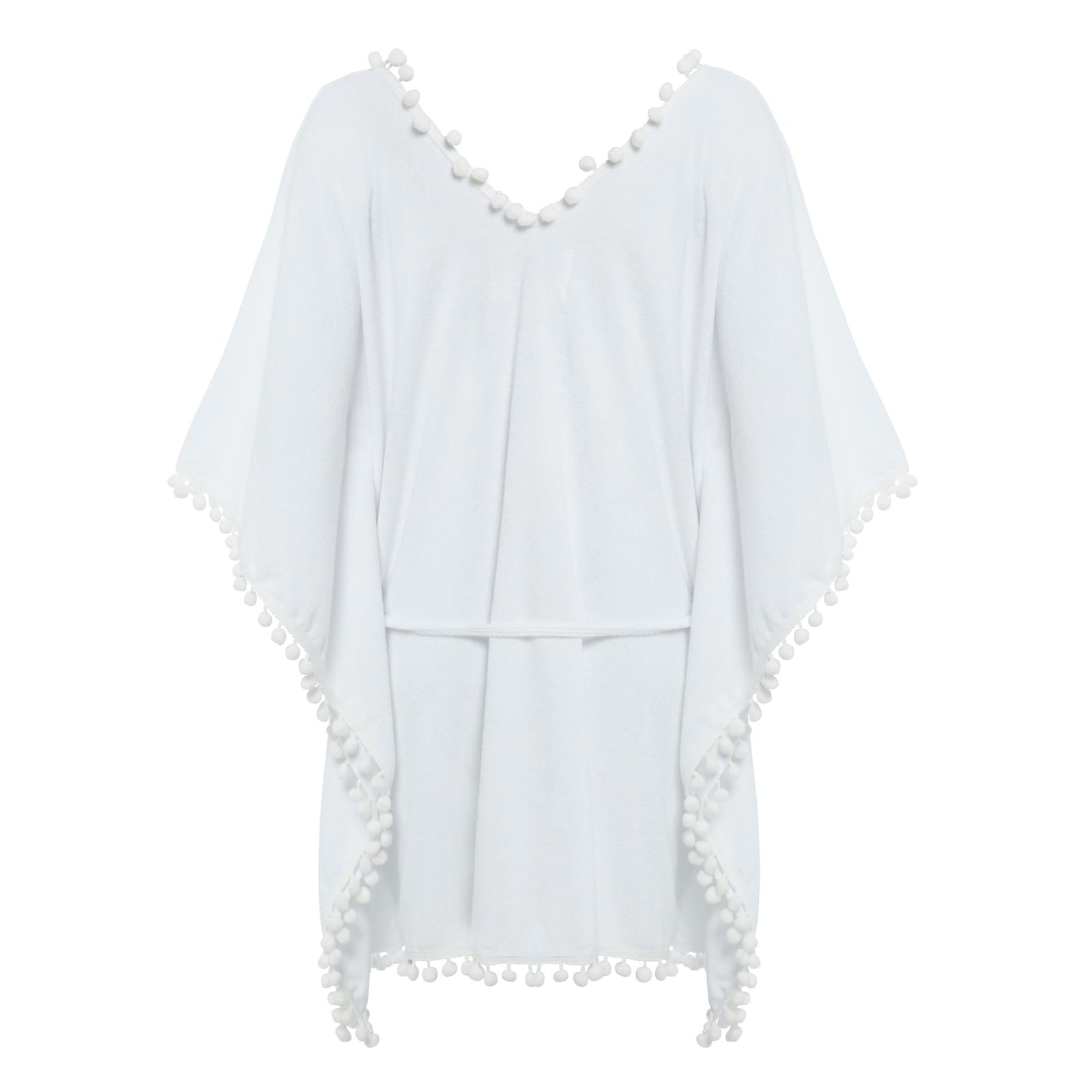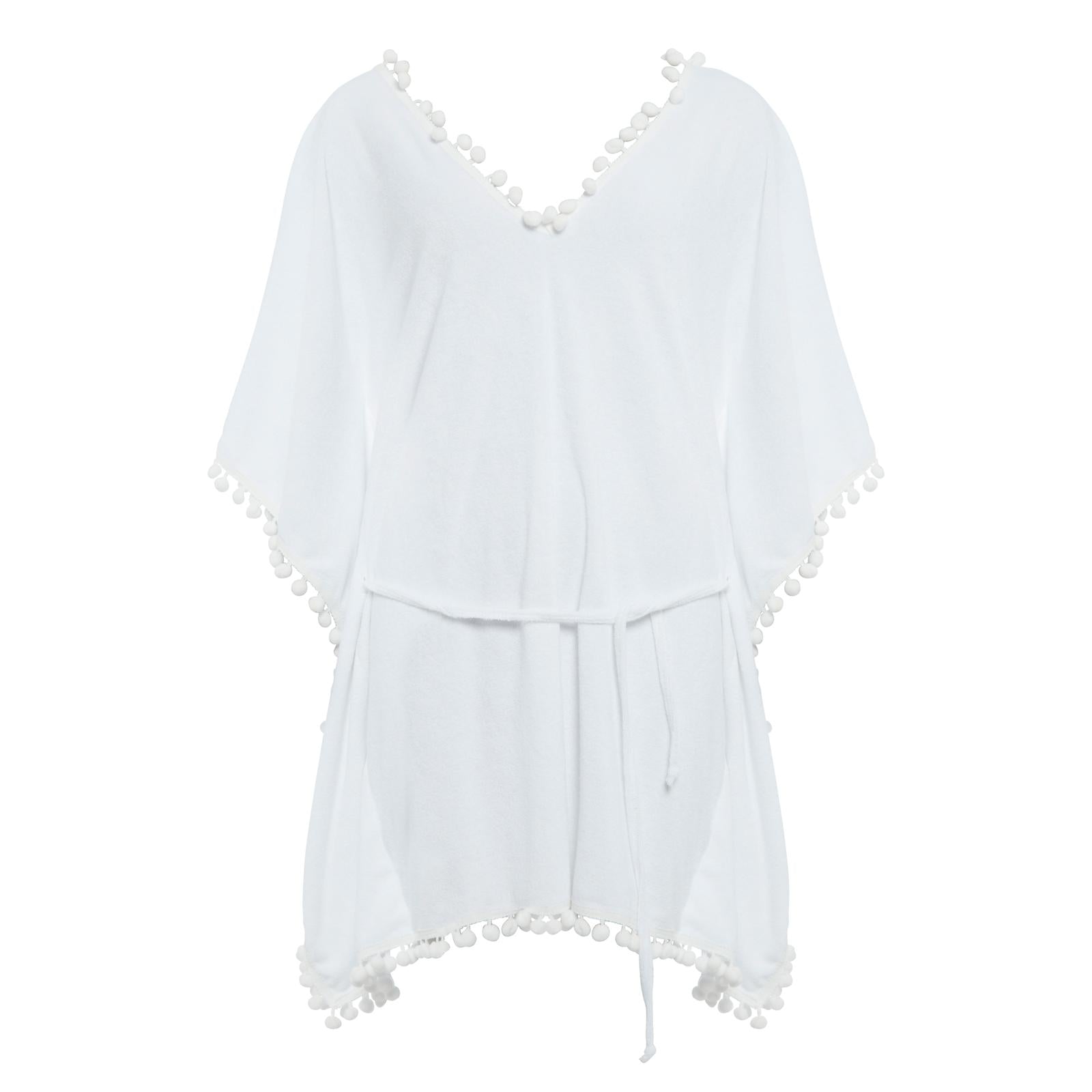 Luxurious towelling dress with playful pom-poms.